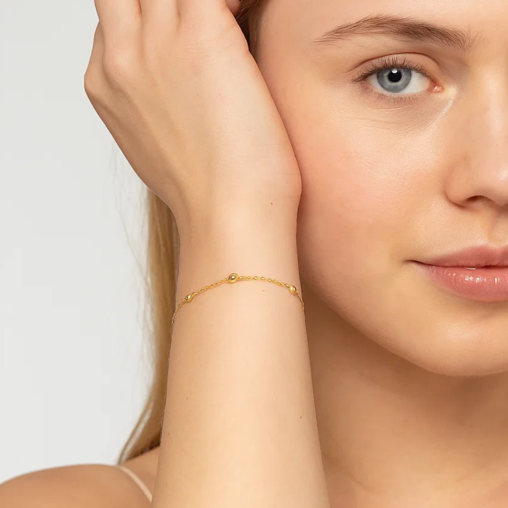 Elevate your everyday style with this delicate 18K gold-plated sterling silver bracelet, featuring sparkling cubic zirconia accents. The dainty chain design adds a touch of sophistication, while the brilliant stones provide a timeless sparkle. Perfect for layering or wearing solo, this bracelet is a must-have for any jewelry collection. Ideal for gifting or treating yourself to a little luxury. Adjustable for a comfortable fit.