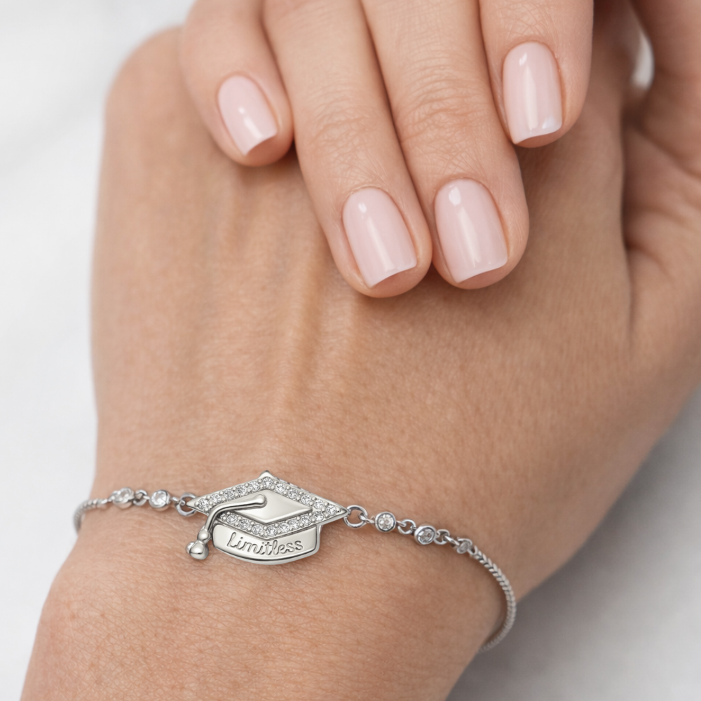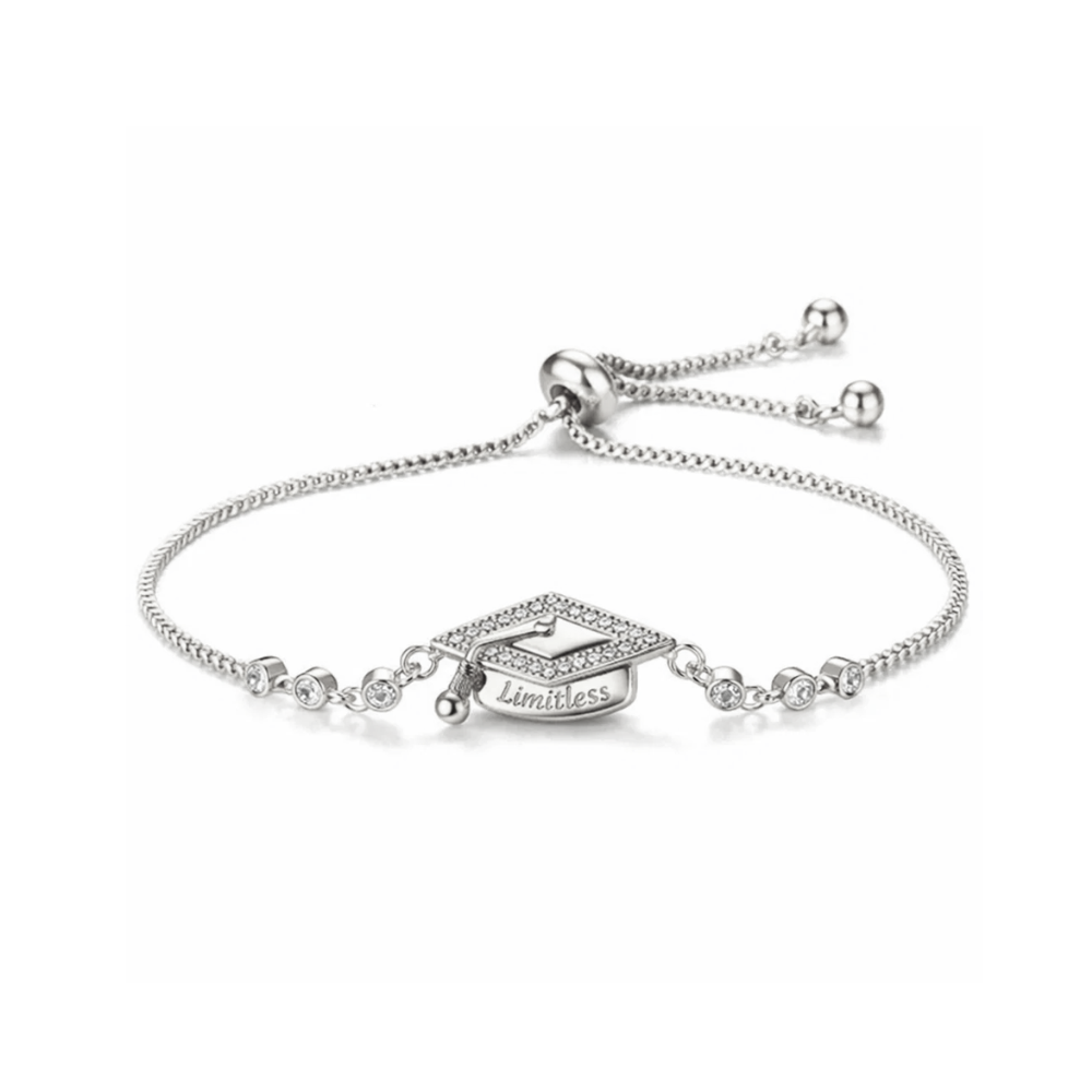 The Limitless Pavé Graduation Cap Adjustable Bracelet is a refined symbol of accomplishment and possibility. Featuring a delicately detailed graduation cap charm framed in brilliant cubic zirconia, this elegant adjustable bracelet is designed to commemorate life’s proudest milestones.